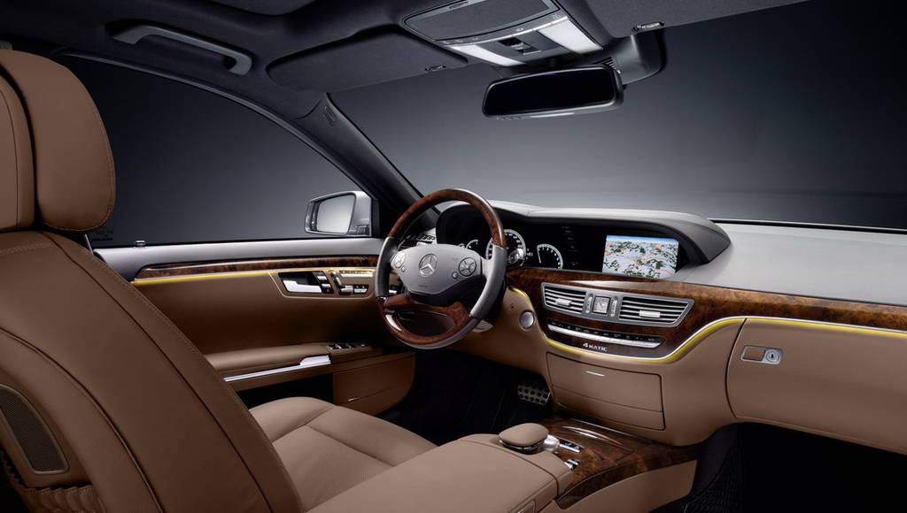 The German automaker decided to apply the AMG Sports Package on their 2009 Mercedes-Benz S Class. A few elements in this package will actually improve performance but it does give the luxury sedan that specific AMG aggressive look. To be exact the The 2009 Mercedes-Benz S Class AMG Sports package consists of new front and rear aprons optimized for better air-flow shaped in the typical AMG fashion with redesigned side skirts, larger tailpipes for a meaner looking exhaust system, as well as 19 or 20 inch alloys with the five double-spoke design to complete the overall appearance.