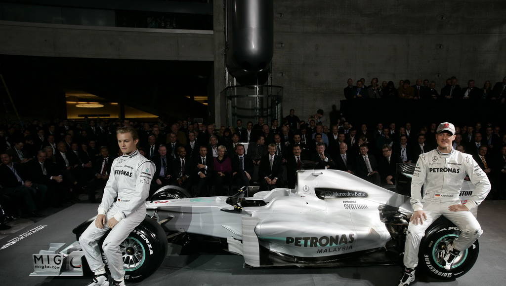 Today, the new Silver Arrows Formula One works team MERCEDES GP PETRONAS was presented at the Mercedes-Benz Museum in Stuttgart. Nico Rosberg and seven-time Formula One World Champion Michael Schumacher along with team management Ross Brawn, Nick Fry and Norbert Haug were introduced to guests with a presentation and press conference.