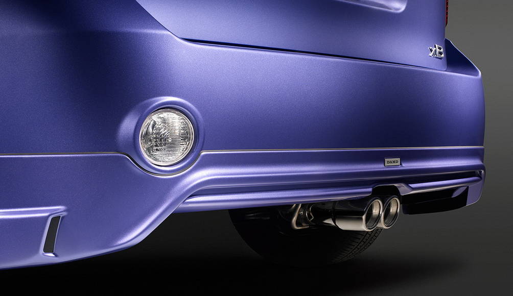 One of the most distinctive features of the xB RS 7.0 is the TRD sport muffler that exits out the center of DAMD rear lip. The exhaust system features twin double-walled tips and is specifically designed in conjunction with the DAMD rear lip to give the xB a sporty appearance and a sound that can only be found on this particular Release Series. To complete the stylish exterior, the xB RS 7.0 is equipped with TRD lowering springs that bring the ride height down over an inch and offer sporty handling. A color-keyed rear spoiler will be available as an option.