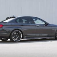 The 2011 BMW 5 Series by HAMANN sits on 21 inch aluminium alloys while at the interior the tuner can apply their carbon kit to the dashboard, center console, door handle panels and steering wheel, and additional elements include aluminium pedals and foot rest and new floor mats.