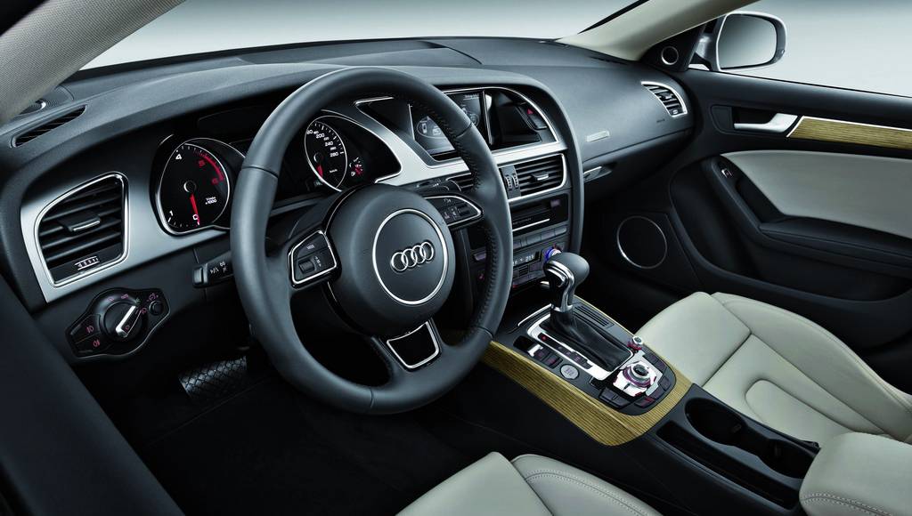 At the interior the facelift versions 2012 Audi A5 fell more elegant and comfortable due to higher quality materials, new steering wheels, displays illuminated in white, new paint covers and bezels on the instrument cluster and center console, revised buttons and various other improvements.