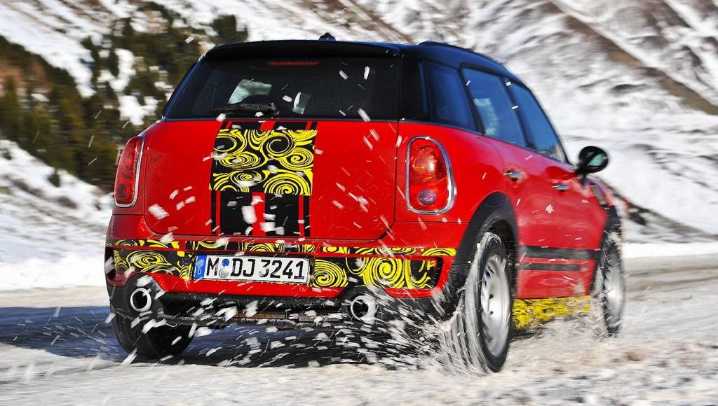 MINI will unveil the 2012 Countryman JCW (John Cooper Works) at the upcoming Geneva Motor Show, but until that happens, here are a few photos that show a mildly disguised version testing in Austria in wintry conditions.