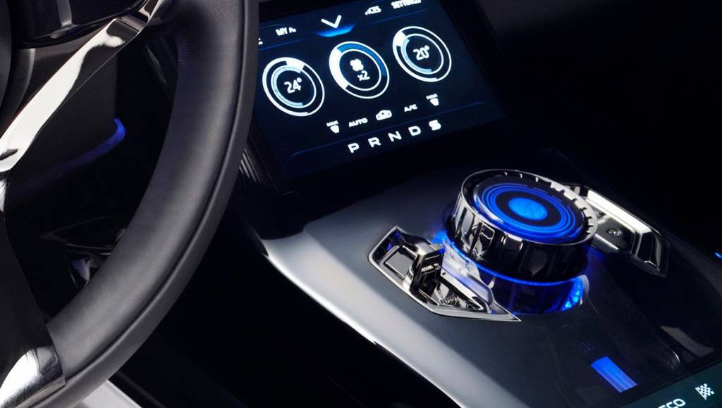 Inside the cabin there is a two-tone leather upholstery, aluminum and metal accessories. We also see a full-length center console that offers a futuristic infotainment system and a Meridian audio system.