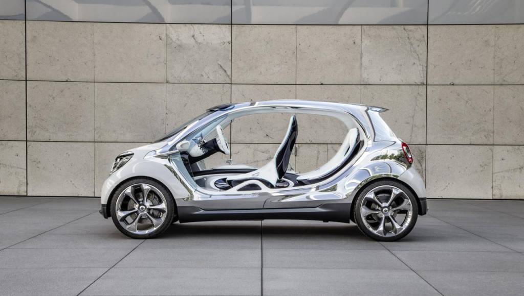 According to Smart, the roof, rear window and doors are just "unnecessary ballast" so they ditched them. The prototype measure 3.494 millimeters ling, 1.978 millimeters wide and 1.494 millimeters tall.