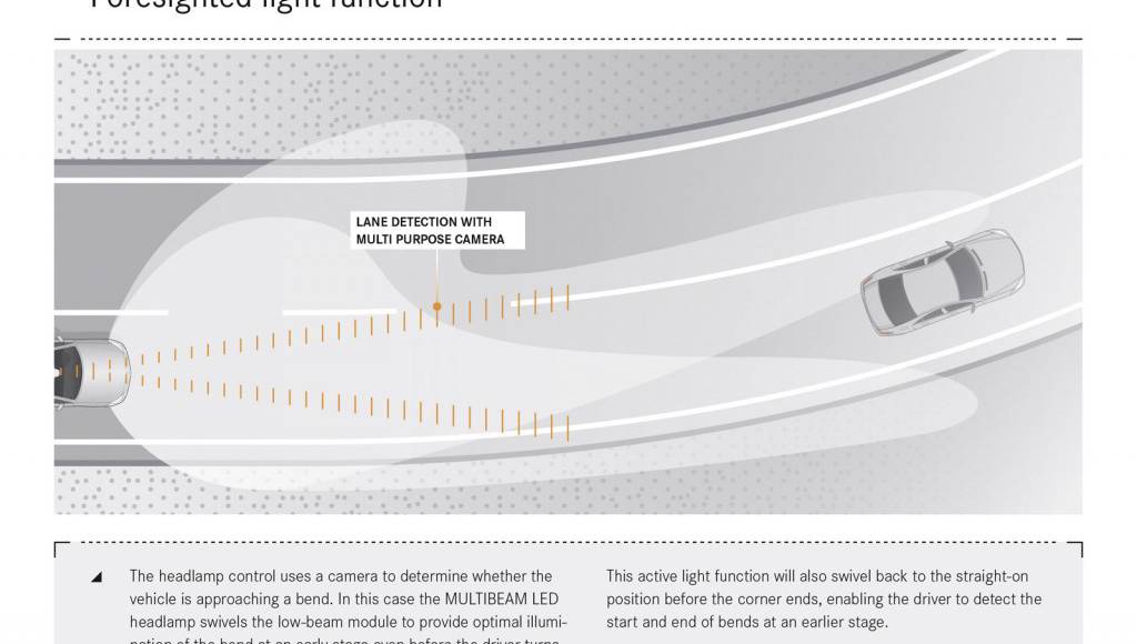Mercedes-Benz announced the new 2015 Mercedes-Benz CLS-Class model will feature their new MULTIBEAM LED headlights. The headlamp combines 24 individually controlled high-performance LEDs to enable precision control for the cars lighting without affecting other drivers. The headlamps react more quickly to bends in road and traffic conditions. The MULTIBEAM LED headlights expand upon Mercedes existing Intelligent Light System (Adaptive High Beam Assist).