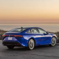 Built on the rear-wheel drive GA-L platform that also underpins the larger Lexus LS sedan, the 2021 Toyota Mirai makes a major design departure from the front-wheel drive first-generation version. The body is lower, longer, and wider, with its bolder stance accentuated by standard 19-inch alloy wheels.