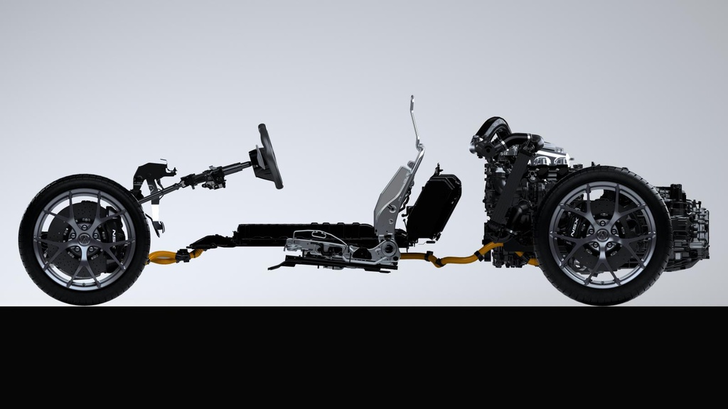 To help impress the large public, Honda decided to use a twin-turbocharged 75-degree DOHC V6 engine with a 9-speed dual clutch transmission (DCT) and three-electric motor Sport Hybrid system—integrated with an ultra-rigid and lightweight multi-material body with world’s-first material applications and manufacturing processes.