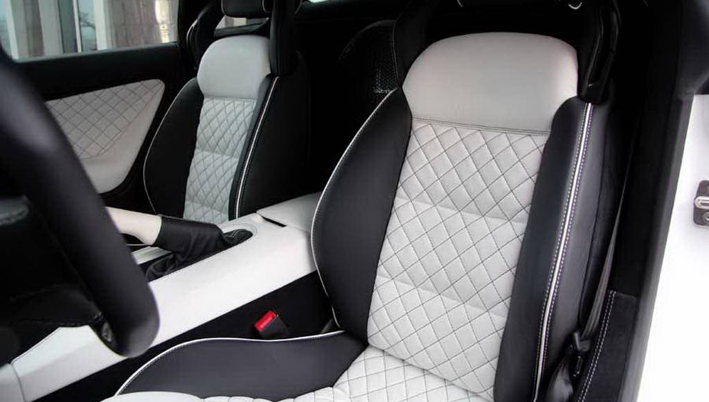 The seats of the White Racing Edition are finished in black Alcantara and black and white leather; the edges of seats are entirely in white; doors and seats have diamond-shaped stitching.