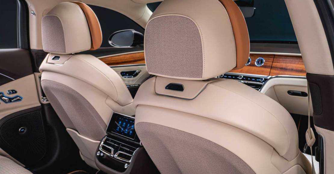 There is leather in the cabin, but Bentley says it is sustainably sourced. Customers can choose from the colors Autumn, Beluga, Porpoise, Cricketball, Brunel, Burnt Oak, and Linen.