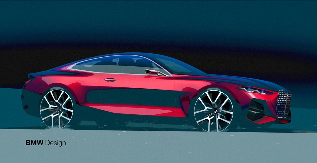 Seen from its side, the BMW Concept 4 comes with a stretched bonnet, long wheelbase, flowing roofline and short overhangs. All these details are creating a modern, elegant and dynamic coupe outline.