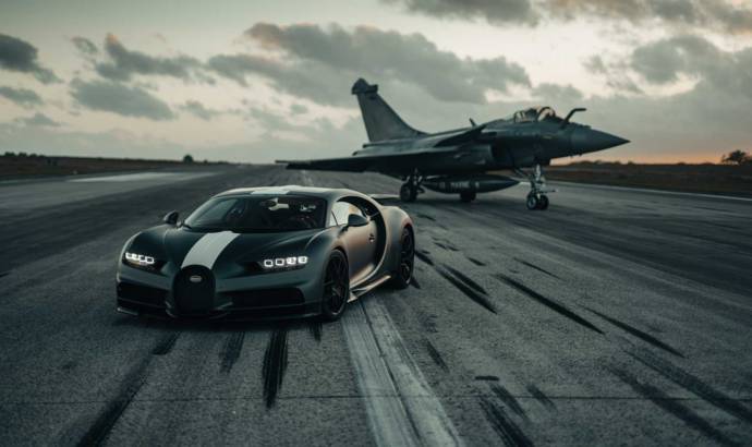 Bugatti has now organized a duel between the new Chiron Sport in the Les Légendes du Ciel specification and the mighty Dassault Rafale Marine jet fighter.
