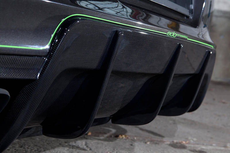 In terms of aerodynamics, Edo’s Hellboy was fitted with a new carbon fiber front skirt that features larger air intakes for improved cooling, a carbon front lip, new side skirts as well as a newly developed carbon fiber rear skirt with diffuser fins.