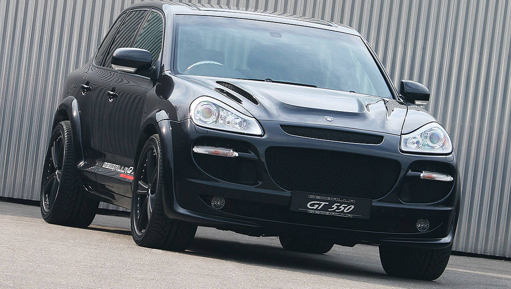 Well known German tuner Gemballa has released a new custom package for the Porsche 957 Cayenne Turbo. This custom package gives the Gemballa GT 550 Aero 3 Porsche Cayenne Turbo the "usual" unique and agressive appearance plus it improves airflow mainly due to its large air vents in the front bumper, grille and bonnet.