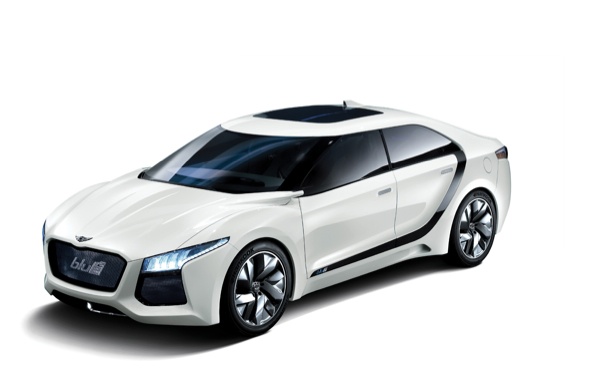 Aiming at gaining early leadership of the FCEV market, Blue2 is powered by a fuel cell electric system that delivers a stack power of 90kW(1.65kW/L) and fuel economy of 34.9km/â„“. The Blue2 is materialized in a sporty and luxurious style, a combination of futuristic, flowing designs and eco-friendly features. The Blue2 is equipped with low-resistance tires and alloy wheels which are designed to improve aerodynamic performance, while the car’s interior design encompasses a futuristic look by using eco-friendly new materials.