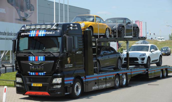 Porsche Centrum uses the 400 HP MAN TGX 6×2 to collect customer cars. Accordingly, the special transporter is equipped with special low-profile ramps and full air suspension allowing for fine adjustment of vehicle height. This enables even very low-built sports cars, historic Porsches or racing cars to be loaded on to the truck.