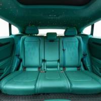 The external color motif is green and black, which can be found everywhere: the bodywork is two-toned and gradients from black to green, while the front windows are tinted green and the rear windows black.