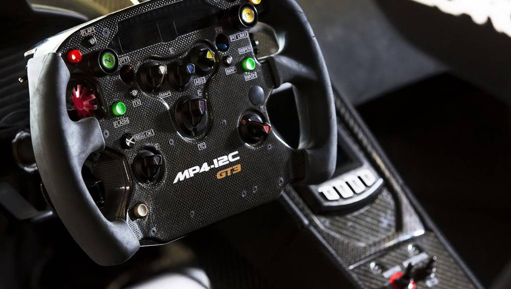 Besides the numerous motorsports derived adaptations which include a more aerodynamic body (fully made from carbon fiber), a stripped down interior, upgraded brakes and suspension, improved steering and weight distribution, the McLaren MP4 12C GT3 has also received a Formula 1 steering wheel mounted with paddle shifters that operated the