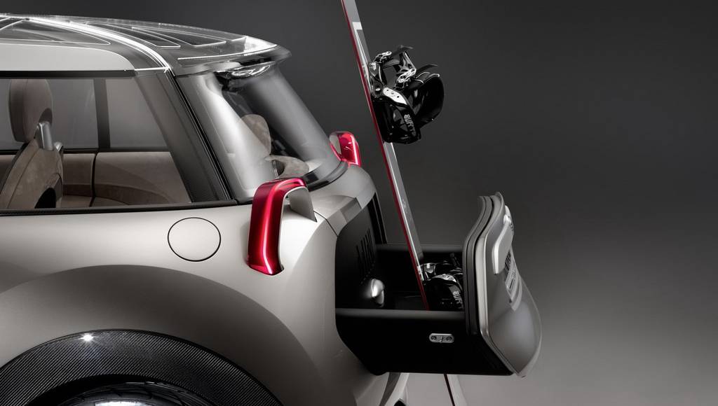 The MINI Rocketman Concept also uses creative design and innovative technical solutions to open up new layout options for the luggage area. This enhances the versatility of the existing space and means it can be used more efficiently. The split two-part tailgate consists of one section which is attached to the roof and opens extremely high and a lower section which extends out 350 millimetres from the body in the form of a drawer unit. The drawer represents the further development of the downward-opening tailgate seen on the classic Mini. This construction principle allows room to be made for pieces of luggage and travel items even when the car is carrying four occupants. The MINI Rocketman Concept literally grows as a vehicle when it’s time to start loading up the gear.