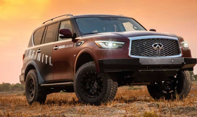 The INFINITI QX80 was chosen for the rally for its already-impressive capability and sturdy body-on-frame construction. The three-row, luxury full-size SUV is equipped as standard with a smooth 5.6-liter V-8 that produces 400 horsepower and 413 pound-feet of torque and shifts its power to the rear or all four wheels via a confident seven-speed automatic transmission.