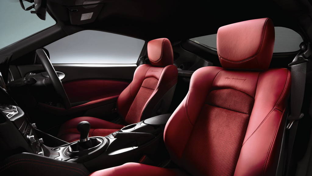 Based on the 370Z Coupe Touring model the Nissan 40th Anniversary edition comes equipped with a manual gearbox and the Sport Package as well as the ’40th Quartz’ body colour and red leather interior.