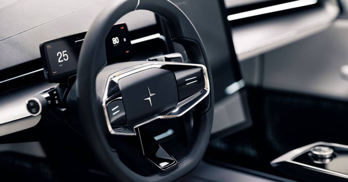 The interior of Polestar Precept features a mix of sustainable materials including recycled PET bottles, reclaimed fishing nets and recycled cork vinyl. A flax-based composite developed by external partner Bcomp Ltd is featured in many interior and some exterior parts. Polestar’s ambition is to bring much of this sustainability into production.
