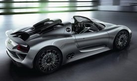 The hybrid system used by the Porsche 918 Spyder for propulsion is composed from a 500 HP V8 petrol engine and three electric motors that offer an additional 218 HP (160 kW). Thanks to this powering system the Porsche 918 Spyder will hit 100 Km/h (62 mph) from a stand still in 3.2 seconds while capable of reaching a top speed of 320 Km/h (198 mph).