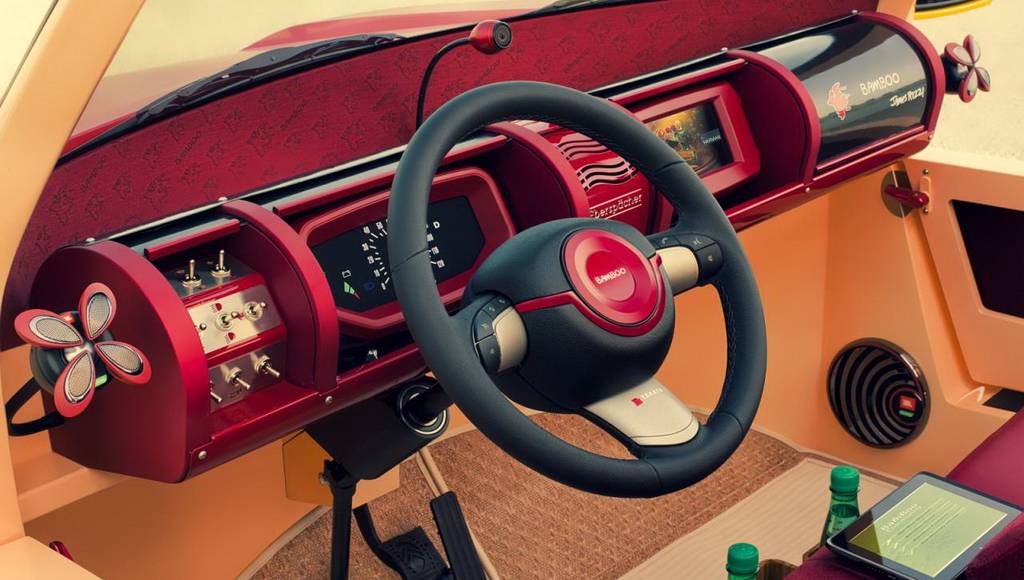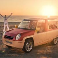 Designed by New York pop artist James Rizzi, the Rinspeed BamBoo Concept represents a ‘taste of summer’ and a ‘taste of beach and sand’, with an overall aspect reminiscent of the 70s, but packed with clever innovations like a communication display replacing the radiator grille, an inflatable roof that serves as a beach blanket, inflatable rear seats, a breadbox dashboard, a docking station for the seven-inch HTC tablet PC ‘Flyer’, a 7-speaker audio system from JBL and more.