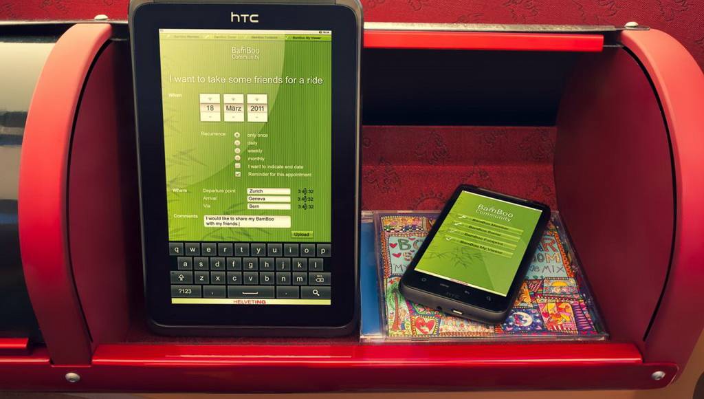 The puristic dashboard is in the shape of a giant breadbox – and the fine cover made from braided plastics supplied by polymer manufacturer Ticona – opens in breadbox fashion to reveal the control elements and the futuristic VDO display. The far right of the glove box houses a seven-inch HTC tablet PC “Flyer” with docking station. In keeping with the times the tablet PC and the occupants’ smartphones guarantee that the “BamBoo” and its passengers are always connected everywhere. The elongated “bread bin” is flanked by Harman JBL GreenEdge speakers in an avant-garde design. The world’s leading provider of premium sound and infotainment systems is focusing on connectivity with its scalable entertainment system and the “Aha Radio” application. And in the center thrones the vent of the electric high-voltage heater from German supplier Eberspächer catem. By the way the “BamBoo” is started with an army knife. Typically Swiss.