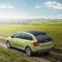 The package comes either silver 16-inch ‘Rock’ or 17-inch ‘Camelot’ alloy wheels. The exterior mirror housings have a reflective silver finish. The full range of Skoda Rapid Spaceback exterior colours are available for the ScoutLine, including the ‘pistachio green’ colour in the official press release.
