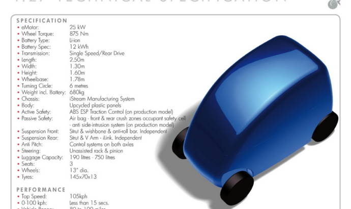 Gordon Murray has released the full list of specs for the T.27 electric city car. Featuring a powertrain developed by Zytek Automotive the T.27 electric city car combines lightweight design with power provided by a 25 kW electric motor that is backed by a Li-Ion battery pack.