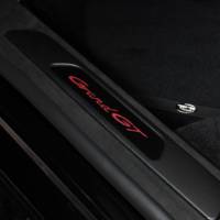 With the Carbon Interior Kit the driver can experience the sportiness and elegance of the TECHART GrandGT also in the inside of the car. Carbon fibre trims at the dashboard, the door panels as well as the center console panels in carbon fibre and the illuminated door entry guards in a carbon fibre look ensure a high presence of the material also in the interior.