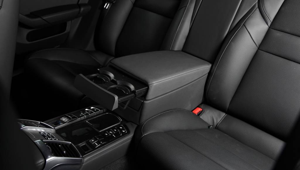 TECHART guarantees a great ride at all four seats thanks to the wide variety of entertainment options available for the Panamera. For instance, TECHART offers, among other things, an entertainment package with two 7-inch screens that are seamlessly integrated in the design of the front seat backrests, incorporated in a high-quality leather screen console matching the colour of the vehicle’s interior, for entertainment in the rear passenger compartment of the four-seater. A highlight for the Panamera: the TECHART center console unit for adding a 12V outlet and integrated cupholder to the storage compartment located in the rear passenger compartment. Exclusively available for the Panamera: TECHART rear fold-away tables. Thanks to rugged mechanisms and high-quality materials, the fold-away tables can be used, on the one hand, as a mobile work space for when on the road and as a personal area for relaxing when on long trips.