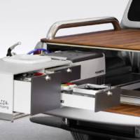 The conversion also comes with a fold-away wash basin, a swiveling toilet unit, and a built-in bathroom roomy enough for a shower. More than that, the X-Class can be fitted with a heavy-duty pull-out module.