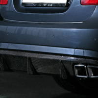 The powerful silhouette with the wedgelike rising side line and the muscular car tail is furthermore supported by a boot spoiler lip for Euro 333.00 and a carbon-diffuser for Euro 1,773.00. The distinctively arrow-shaped front bumper has become still more sportive now thanks to the carbon front apron suspension for Euro 1,416.00. The VÄTH optics package warrants for the perfect harmony of dynamics and sportiveness.