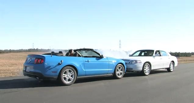 The four rental cars are a Ford Mustang Convertible, a 2011 Lincoln Town Car, a four wheel drive Cadillac CTS and a Jeep Compass.