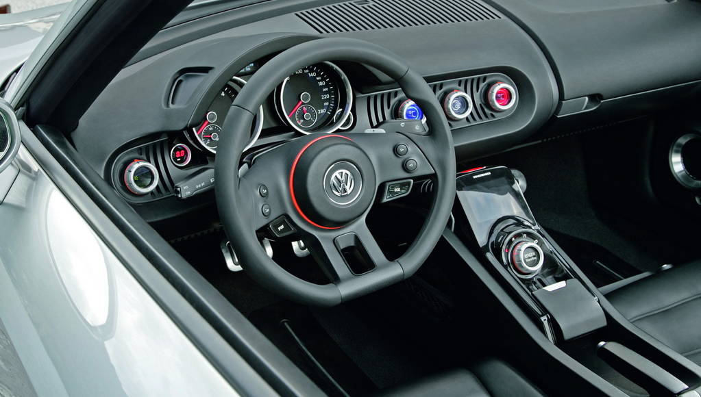 The Volkswagen BlueSport Roadster is equipped with a 2.0 litre TDI engine that is able to output 180 hp (132 kW) and 350 Nm of torque and thanks to its 6-speed dual clutch transmission that sends power to the rear wheels the 0 to 100 Km/h acceleration takes 6.6 seconds while top speed is clocked at 226 Km/h. Keep in mind that you get this kind performance with just 4.3 litres of fuel consumed per 100 Km so the Volkswagen BlueSport Roadster is Euro 6 compliant (standard that goes in effect in 2014).